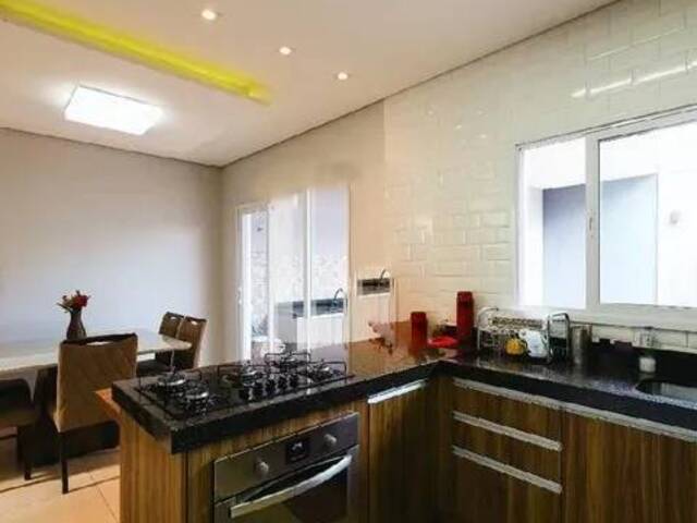 Casa recém construída. 171m² de área útil, piso porcelanato claro, 3 dormitórios, todos com sacada, sendo 1 suíte com closet e ar condicionado, persiana eletrônica, sistema de automação de luzes, sala para 2 ambientes integrada com a cozinha, cozinha estilo americana toda planejada, quintal com churrasqueira, lavanderia fechada, entrada de serviço lateral e 2 vagas de garagem fechada com portão eletrônico,